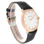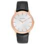 Bracelet: Black leather strap with 18K rose gold tang buckle.