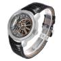 Bracelet: Black leather strap with a stainless steel folding clasp.
