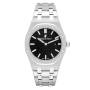 Dial: Black Tapisserie (waffle pattern) dial with raised index hour markers. Date window at 3 o'clock position.