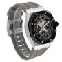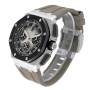 Case: Stainless steel octagonal case 43 mm in diameter. Case thickness: 14.4 mm. Exhibition transparent sapphire crystal caseback. Black ceramic crown and chronograph pushers.