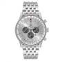 Dial: Silver dial. Luminescent stainless steel outlined hour/minute hands, stainless steel sweeping seconds hand with red pointer, luminescent index hour markers, grey small seconds subdial at 3 o'clock, chronograph subdials at 6 and 9 o'clock, date window between 4 and 5 o'clock aperture.