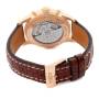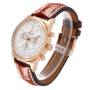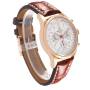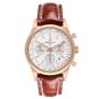 Breitling Transocean 43mm Chronograph Rose Gold Mens Watch RB0152. Authomatic self-winding chronograph movement. 18K rose gold round case 43.0 mm in diameter. Transparent exhibition sapphire crystal case back. Two pushers operate the chronograph functions. Breitling logo on the crown. 18k rose gold smooth bezel. Scratch resistant sapphire crystal. Silver dial. Luminescent rose gold outlined hands and baton hour markers. Tachymeter around the outer rim. Date calendar window between 4 and 5 o'clock. Three subdials - running seconds and the 30-minute and 12-hour chronograph registers. Brown leather strap with white stitches and an 18K rose gold tang buckle.