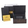 Dial: Silver dial. Luminescent rose gold outlined hands and baton hour markers. Tachymeter around the outer rim. Date calendar window between 4 and 5 o'clock. Three subdials - running seconds and the 30-minute and 12-hour chronograph registers.