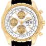 Replica Breitling Bentley Motors GT White Dial Yellow Gold Mens Watch K13362. Self-winding automatic officially certified chronometer movement. Chronograph function. 18k yellow gold case 44.8 mm in diameter. Screw down caseback. 18k yellow gold bidirectional rotating bezel. Scratch resistant sapphire crystal. White dial with luminescent stainless steel outlined hands. Three gold chronograph subdials - 12 hours, 60 seconds, and 30 minutes. Date and day calendar window at 3 o'clock. Black leather strap with 18k yellow gold tang buckle.