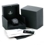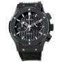 Case: Black ceramic case 45.0 mm in diameter. Exhibition case back. Polished black ceramic chronograph buttons and crown with the Hublot logo.