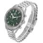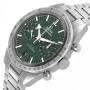 Dial: Green dial with luminescent broad arrow hands and baton hour markers. Date calendar at the 6 o'clock aperture. Two subdials - running small seconds and the 12-hour chronograph register.