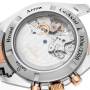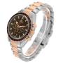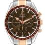 Case: Stainless steel and 18K rose gold round case 42.0 mm in diameter. Transparent exhibition sapphire crystal case back. Two pushers operate the chronograph functions. Omega logo on the crown.