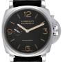 Case: Two part cushion shaped steel case 45.0 mm in diameter. Exhibition sapphire crystal case back. Panerai patented crown protector.