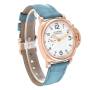 Bracelet: Light blue alligator leather strap with 18k rose gold tang buckle.