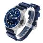 Bezel: Blue ceramic unidirectional rotating time-lapse bezel with graduated scale.