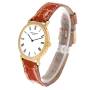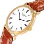 Bracelet: Custom brown leather strap with 18k yellow gold tang buckle