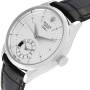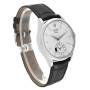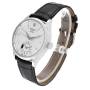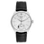 Bracelet: Black leather strap with an 18K white gold tang buckle.