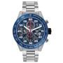 Dial: Blue Skeleton dial with luminescent hands and Arabic numeral hour markers. Date window between 3 and 4 o'clock. Three subdials - running small seconds and the 30-minute and 12-hour chronograph registers. Red central chronograph second hand.