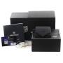 Bracelet: Black leather strap with stainless steel folding push button deployant clasp.