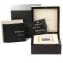 Dial: Black dial with luminous hands and index hour markers. Minute markers around the outer rim. Date window at the 6 o'clock position. Two chronograph sub-dials: 1/10th of a second and 1/100th of a second.