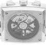 Case: Alternate fine-brushed and polished stainless steel case 39.0 x 39.0 mm. Fluted crown. Transparent exhibition sapphire crystal case back.