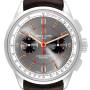 Dial: Grey dial with two black subdials. Raised baton hour markers with luminous hands. Tachymeter around the outer rim. Large central chronograph seconds hand. 30 minute counter sub-dial at 3 o'clock. Small seconds sub-dial at 9 o'clock.