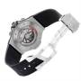 Bracelet: Black 'Gummy-Alligator' strap with stitching: rubber on the inside, alligator on the top-side Stainless steel push button deployant clasp.