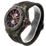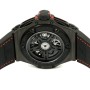 Case: Satin finished black carbon case 45 mm in diameter. Transparrent case back. Polished black PVD coated titanium chrono buttons, with a black rubber insert on the top button & a red lacquered Ferrari logo on the bottom button. FERRARI name logo in red lacquer on the bottom chronograph button.
