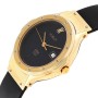 Bracelet: Black rubber strap with the 18K yellow gold deployent buckle.
