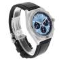 Dial: Ice blue dial with luminescent baton hands and hour markers. Three subdials - running seconds and the 30-minute and 12-hour chronograph registers. Tachymeter scale around the outer rim. Date display within the 6 o'clock subdial.