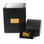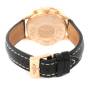 Bracelet: Black leather strap with 18K rose gold tang buckle.