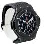 Replica Hublot Big Bang Black Magic Mens Watch 301.CX.130.RX. Automatic self-winding movement. Black ceramic case 44.0 mm in diameter. Exhibition case back. Stainless steel and kevlar pushers and fluted crown. Vertical satin-finished black ceramic bezel secured with 6 H-shaped titanium screws. Sapphire crystal with anti-reflective treatment. Black dial with alternating index hour markers and arabic numerals. Luminous skeleton hands. Large red central seconds counter with the "H" logo as a counter-weight. Red minute markers around the outer rim. Date window between the 4 and 5 o'clock aperture. Subdials - 60 seconds, 30 minutes and 12 hours. Black rubber strap with push button deployent clasp.