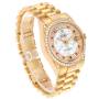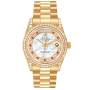 Dial: Mother of pearl myriad dial with an replica Rolex factory diamond-encrusted minute track with Rolex Replica Watches factory ruby hour markers. Yellow gold baton hands. Aperture for the weekday at 12, aperture for date at 3.