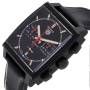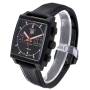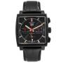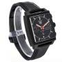 Tag Heuer Monaco Dark Lord Black Dial Titanium Mens Watch CBL2180. Automatic self-winding movement. Black DLC coated titanium case 39.0 x 39.0 mm. Fluted crown. Transparent exhibition sapphire crystal caseback. Black DLC coated titanium smooth bezel. Scratch resistant sapphire crystal. Black dial with raised rose gold index hour markers and luminous hands. Date window at 6. Minute markers around the inner ring. Two chronograph sub-dials - 60 seconds and 30 minutes. Black leather strap with black DLC coated titanium deployant buckle.