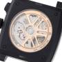 Case: Black DLC coated titanium case 39.0 x 39.0 mm. Fluted crown. Transparent exhibition sapphire crystal caseback.